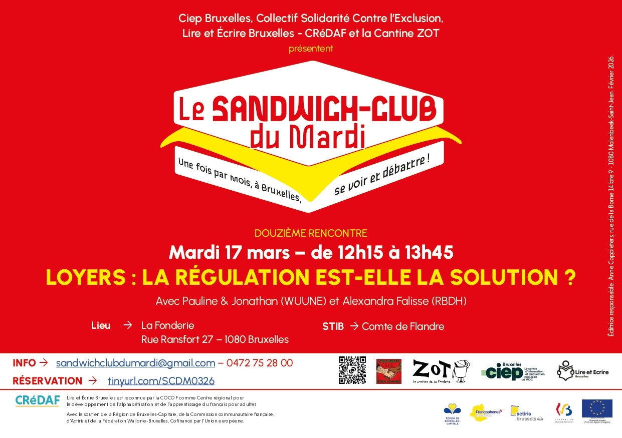 Locataires de tous les pays, unissez-vous ! est une conférence gesticulée participative animée par Sarah De Laet (géographe, gesticulante et militante pour le droit au logement) et des membres du syndicat des Immenses.